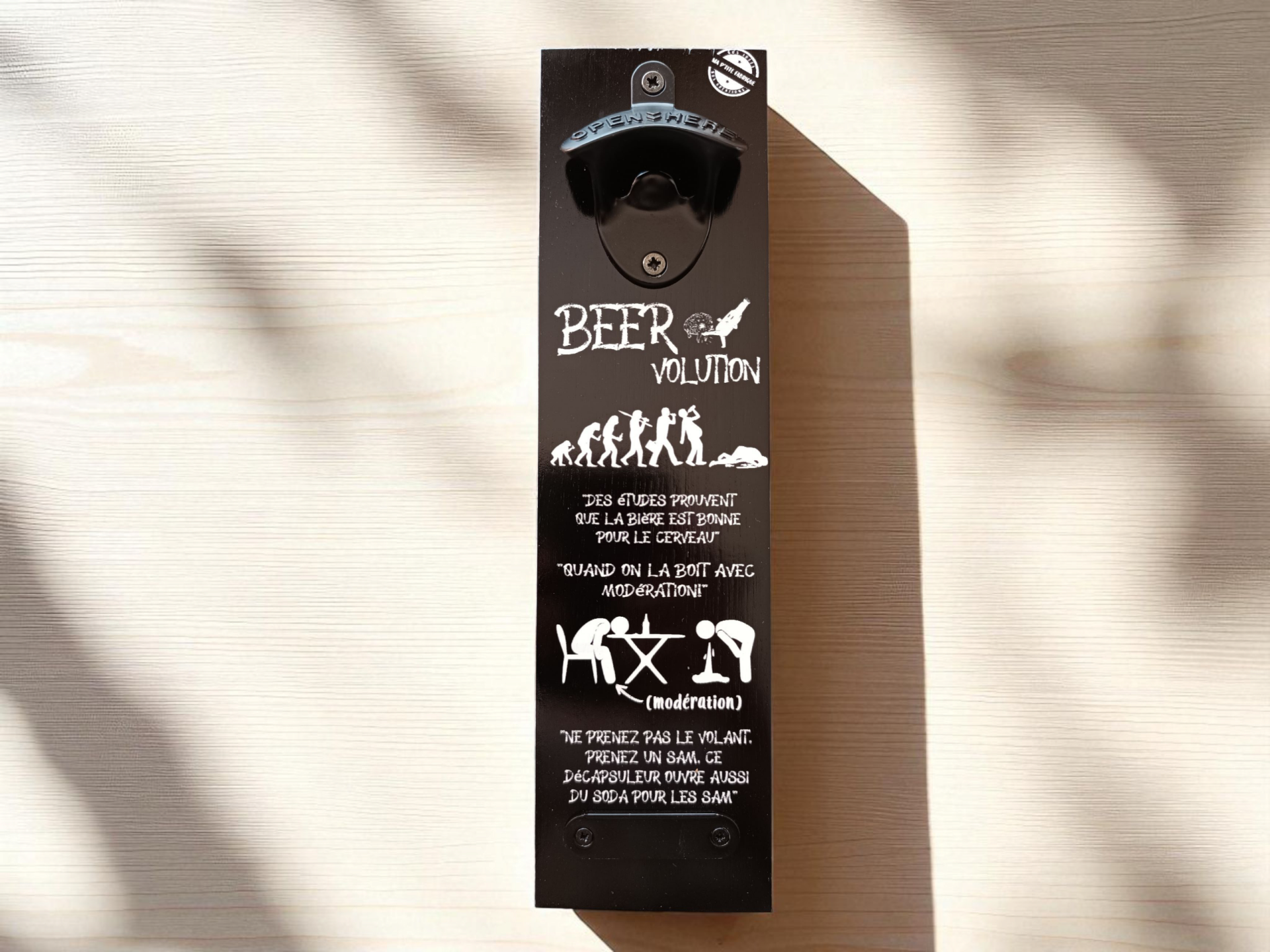 🪵 Décapsuleur mural en bois massif – Beervolution