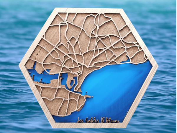 Transformez vos souvenirs en une œuvre d'art unique et intemporelle avec notre cartographie murale hexagonale en bois de peuplier, entièrement réalisée à la main dans notre atelier en Vendée.